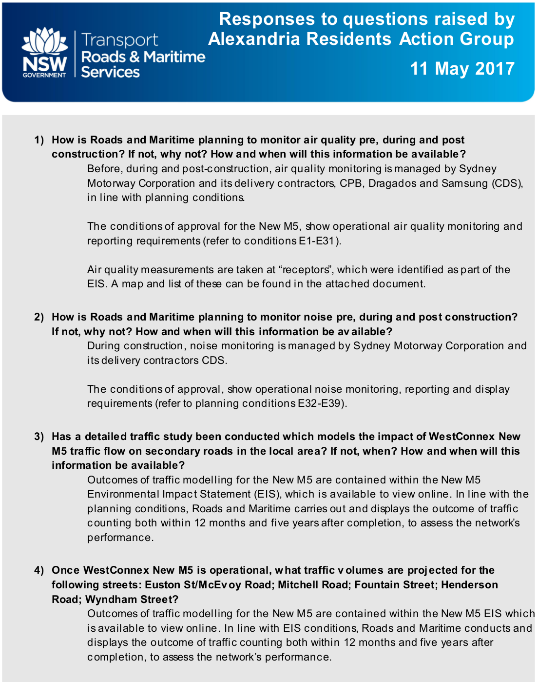RMS response to ARAG questions.